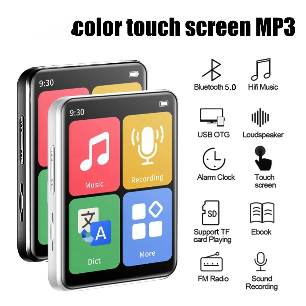 迷你觸摸屏 MP3 播放器隨身聽音樂播放器內置揚聲器+電子書/調頻收音機/錄音 MP4 播放器