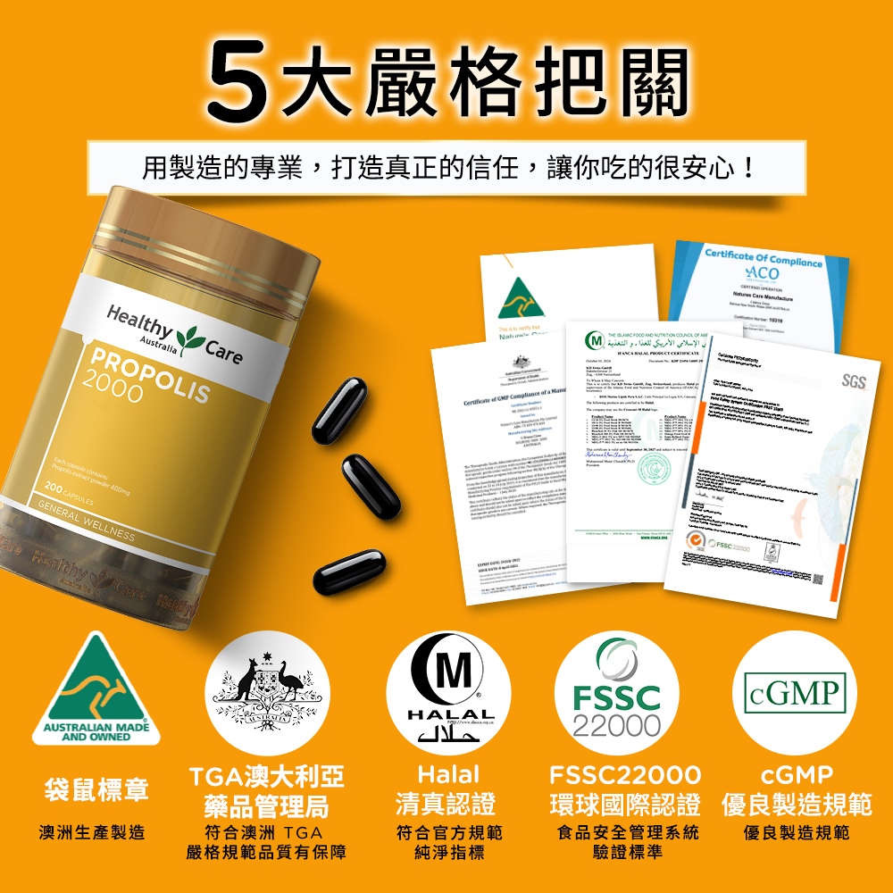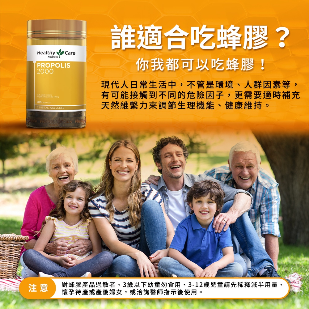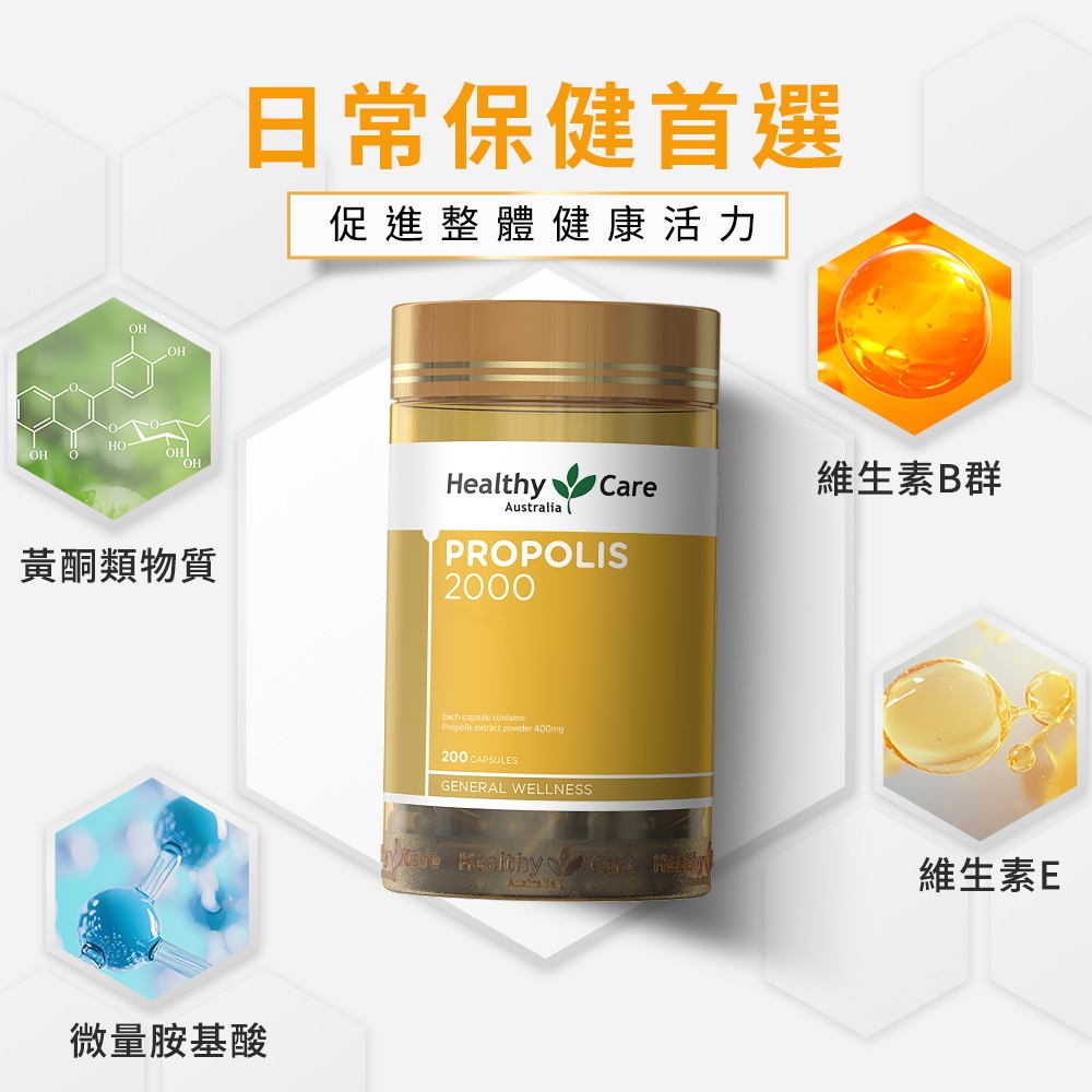 澳洲進口【Healthy Care】蜂膠膠囊2000 (200粒/罐) 原廠台灣公司貨 換季保養 防護力 澳洲