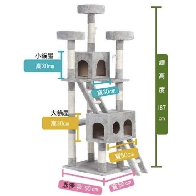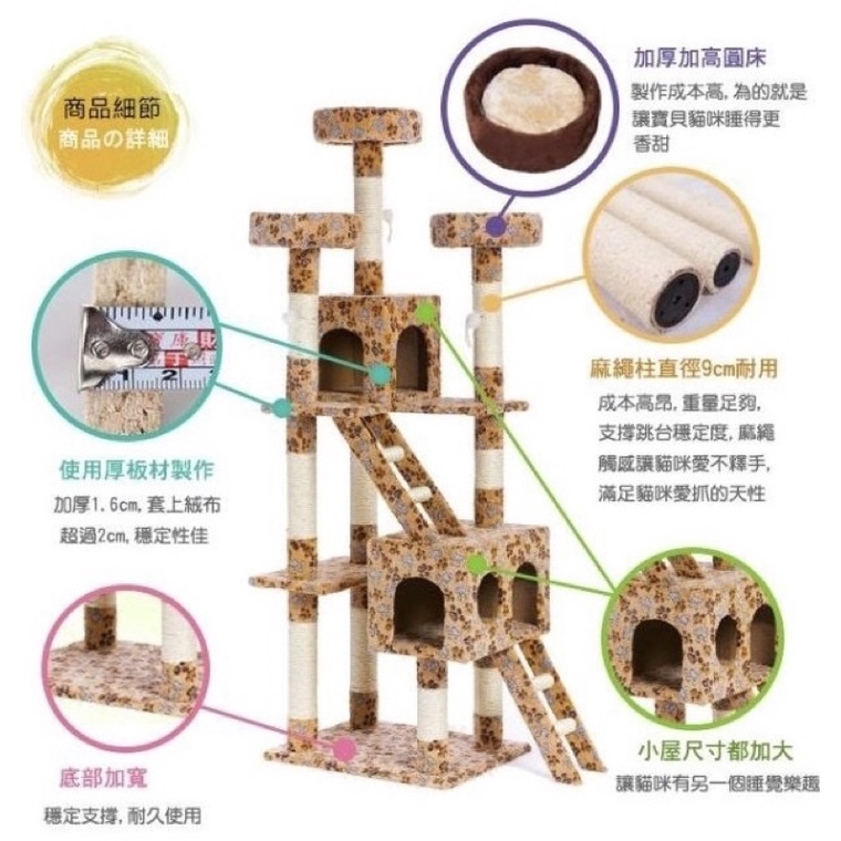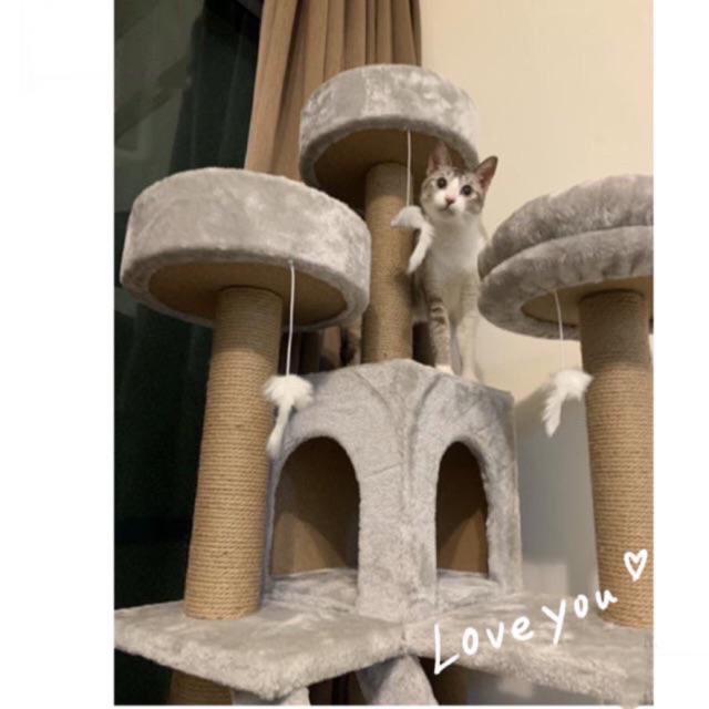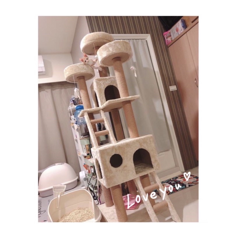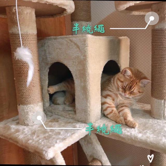 ◎喵仔厝◎【🌕🌳 現貨❕送玩具🌳🌕】9公分粗柱❗ 全麻繩粗柱❗加大尺寸❗(加厚板、海棉床)城堡貓跳台 貓窩貓爬架