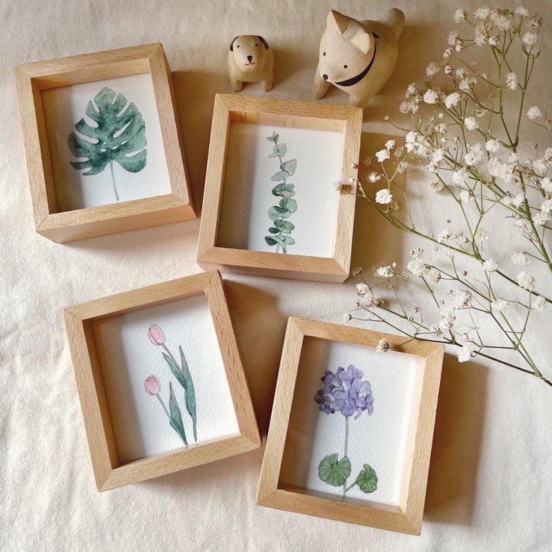 [限量原畫] 龜背芋 / 尤加利葉 / 鬱金香 / 天竺葵 / 水彩手繪 / 木框原畫