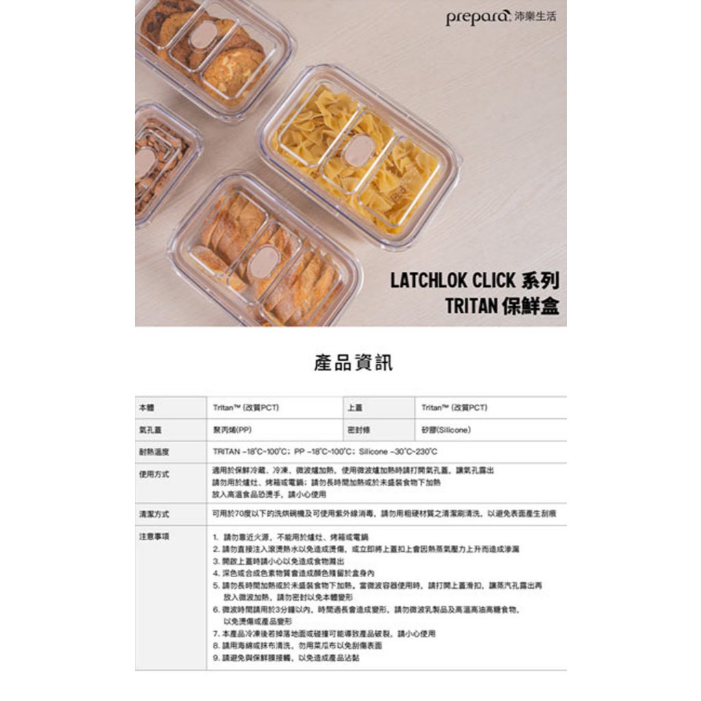 【美國Prepara】Latchlok Click系列-萬用保鮮入門3件組-共3色