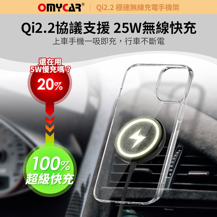 【OMyCar】Qi2.2 極速無線充電手機架(送-冷氣口支架) 國家認證 一年保固 (強力磁吸 感應充電 車用手機架)
