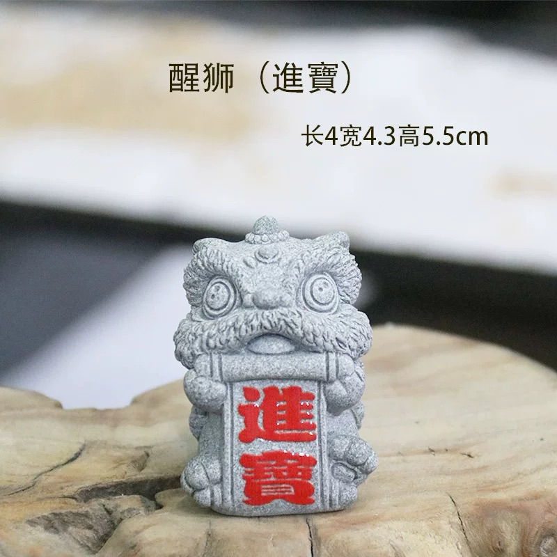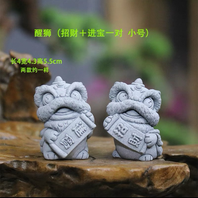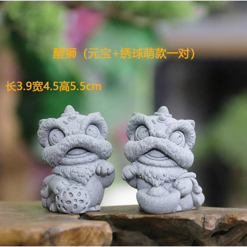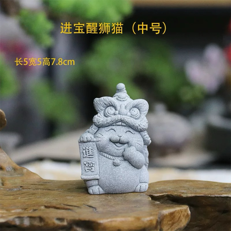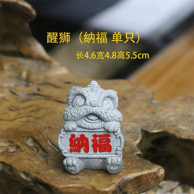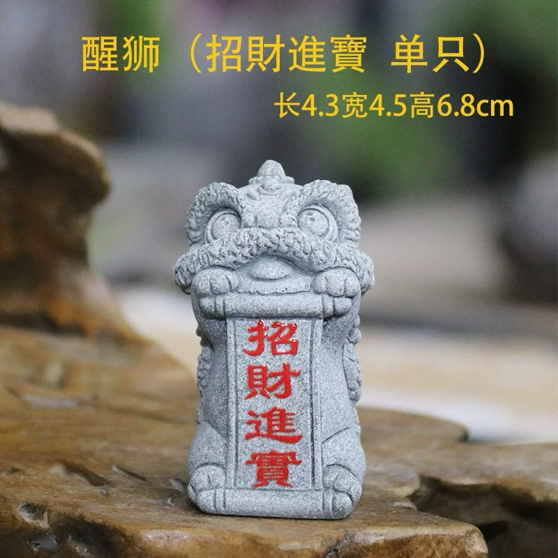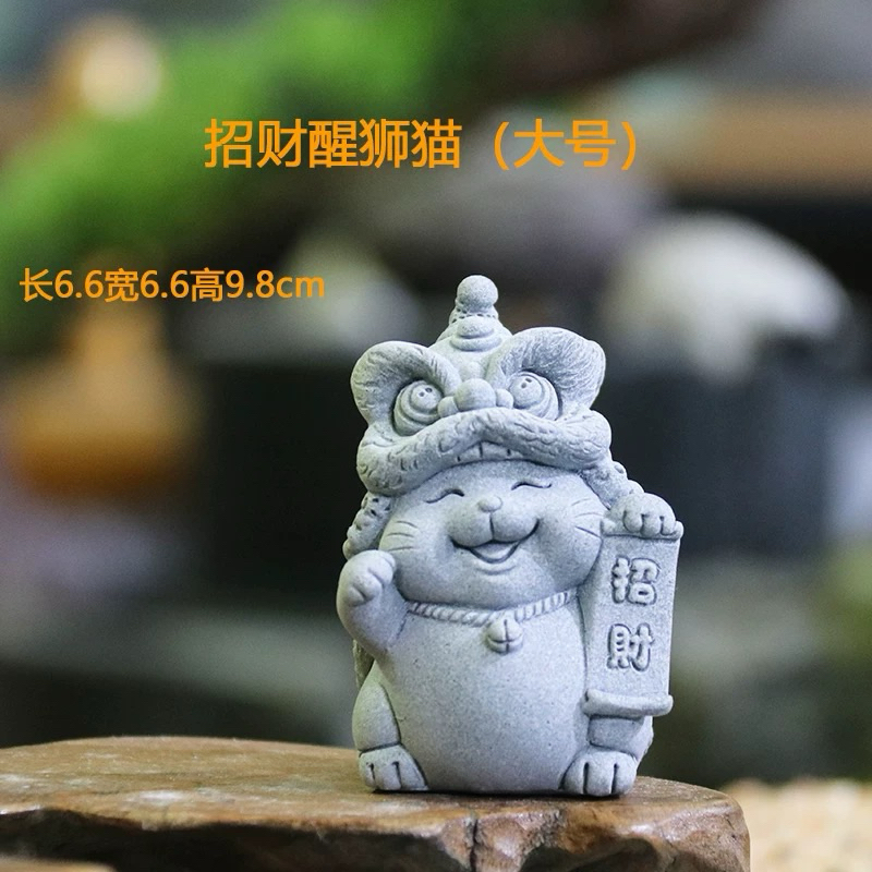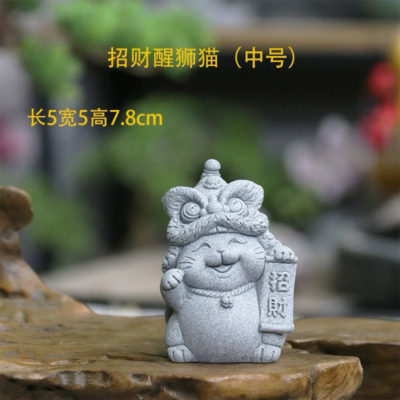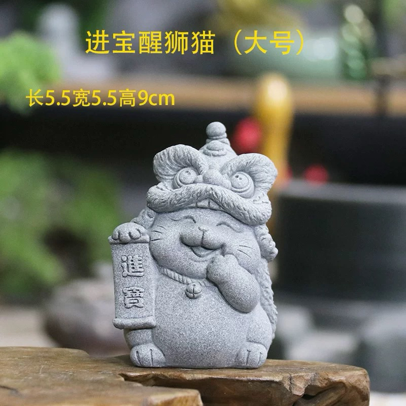 [水族最便宜]招財貓 醒獅招財貓 微景觀 醒獅頭 青砂石茶寵 茶寵擺件 廣東獅 小獅子 青砂石擺件 醒獅貓 招財醒獅猫