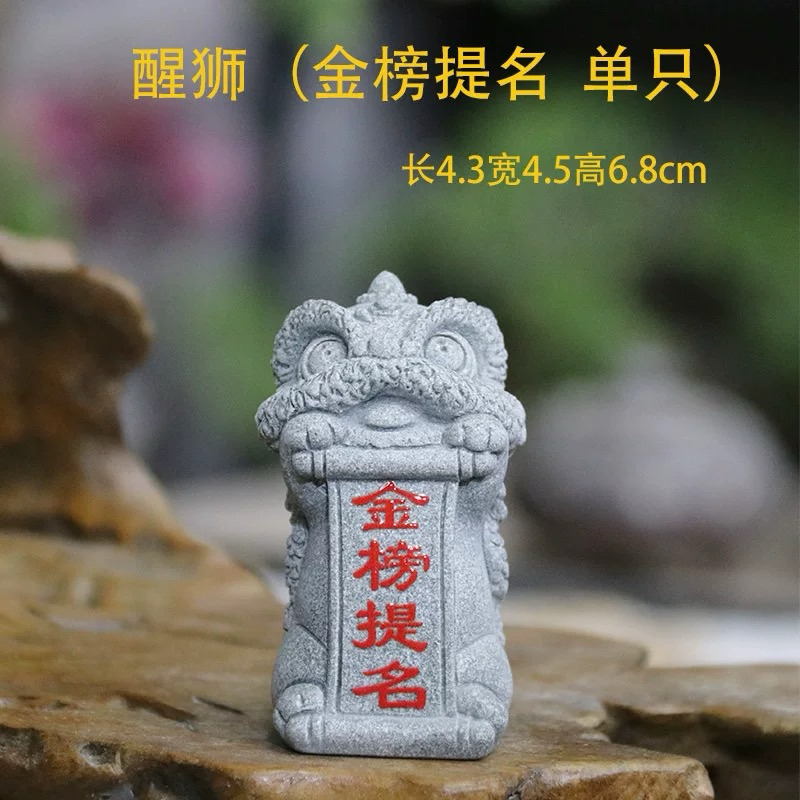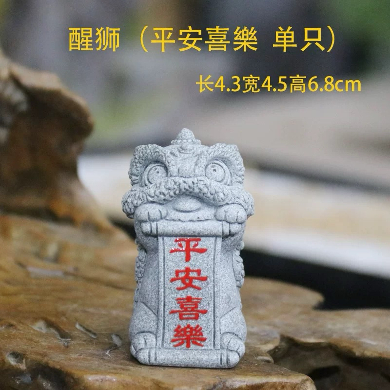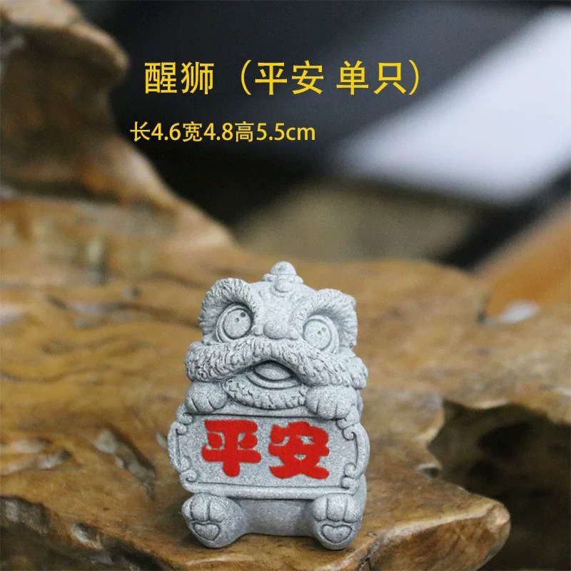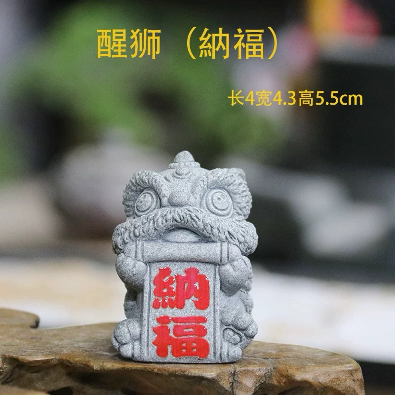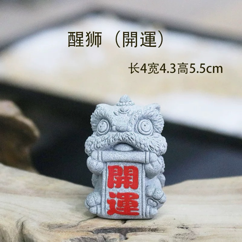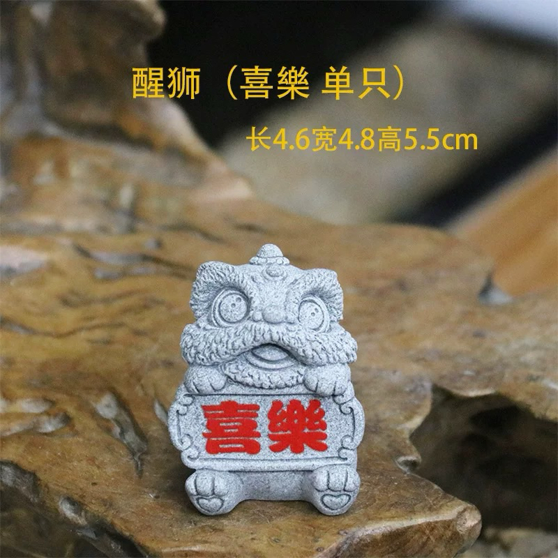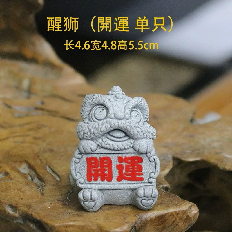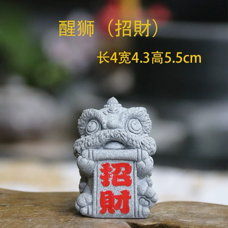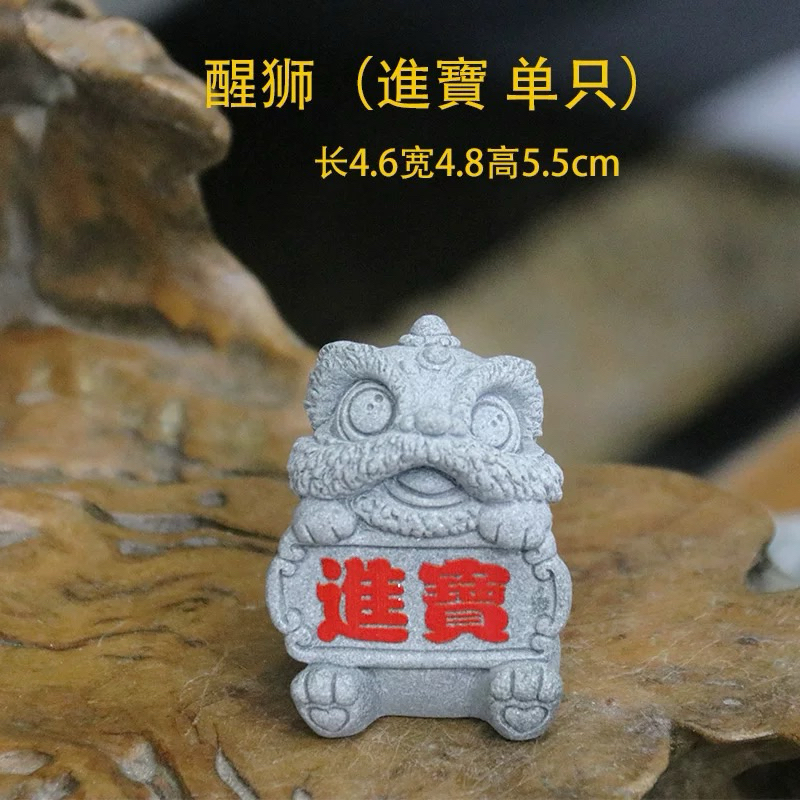 [水族最便宜]招財貓 醒獅招財貓 微景觀 醒獅頭 青砂石茶寵 茶寵擺件 廣東獅 小獅子 青砂石擺件 醒獅貓 招財醒獅猫