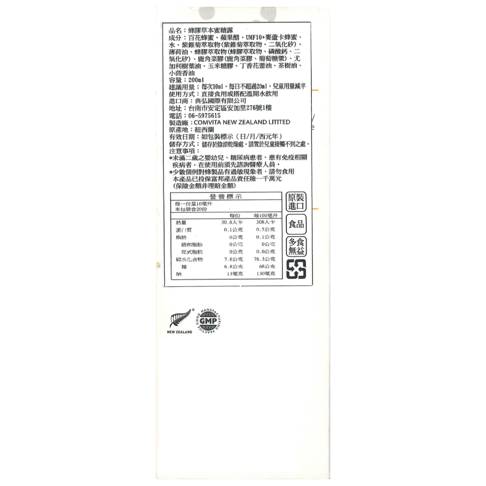 <蝦幣10%=9折>COMVITA康維他 蜂膠草本蜜糖露 (UMF10+麥盧卡蜂蜜) 200ml/罐 專品藥局