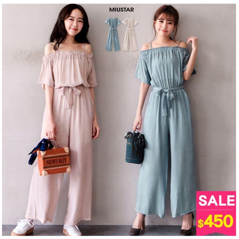 一字領 雙肩帶 連身褲