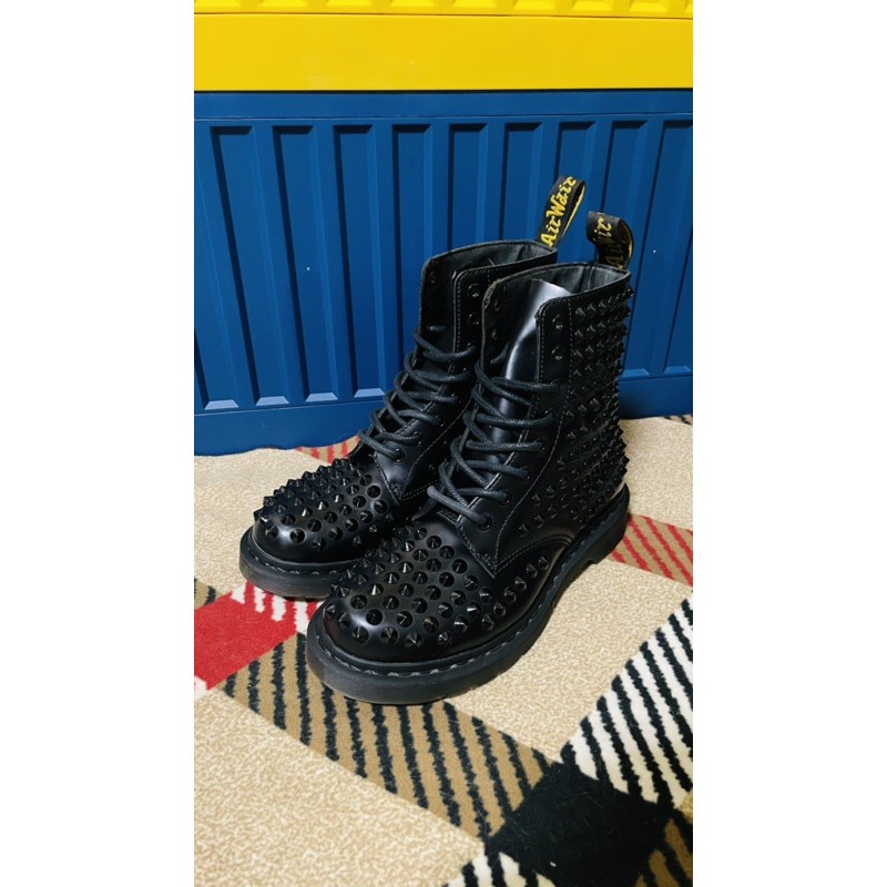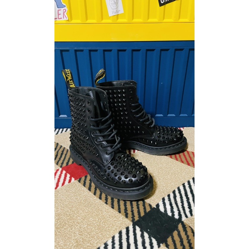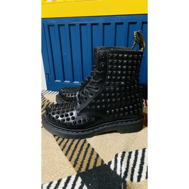 (出清)Dr.Martens 馬汀黑色全卯釘 8孔靴 收藏款!!