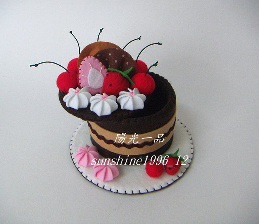 陽光一品~~ 純手工製作~不織布-草莓櫻桃黑巧克力蛋糕置物盒(小)~~成品預購區