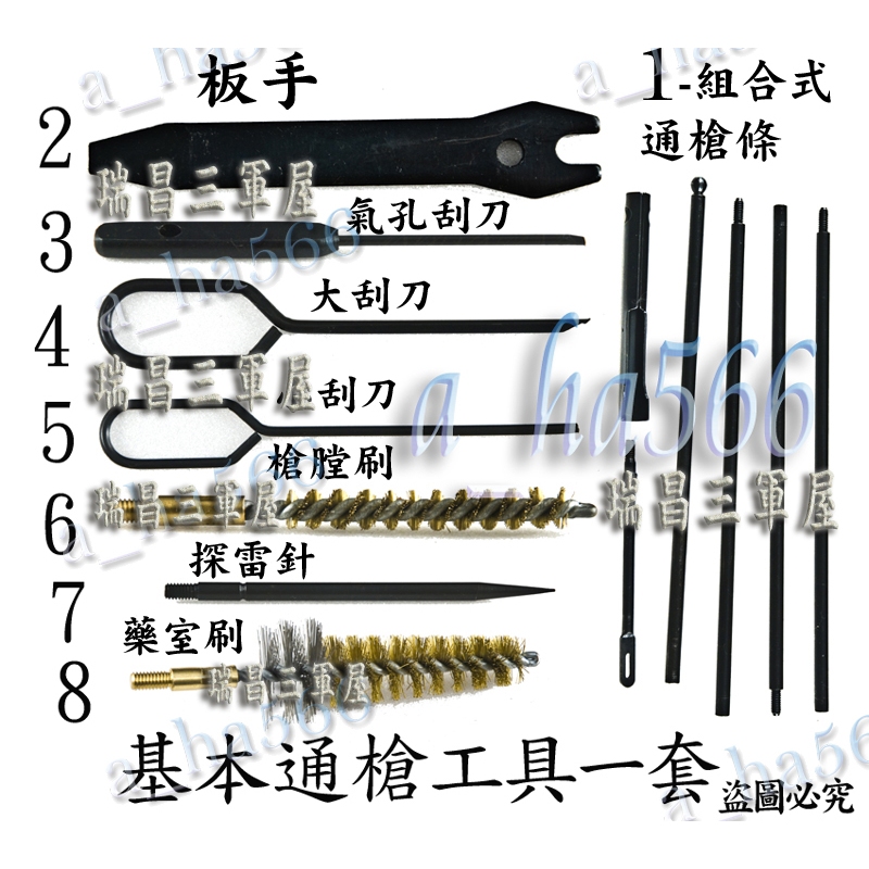軍用品VS生存遊戲-符合軍規*基本擦槍工具*通槍條*大小刮刀*藥室刷*槍堂刷*板手*探雷針*氣孔刮刀*清槍保養工具組