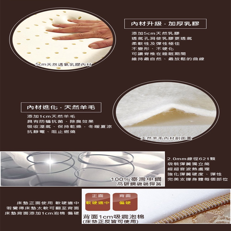 ASSARI-尊爵旗艦5cm乳膠強化側邊獨立筒床墊-單人3尺/單大3.5尺/雙人5尺/雙大6尺 #偏硬 硬式獨立統