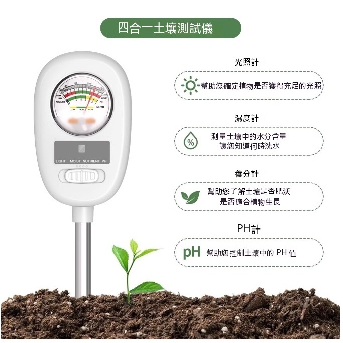 四合一土壤檢測儀ph酸鹼度濕度光照度農業土壤養分檢測儀旋轉90度