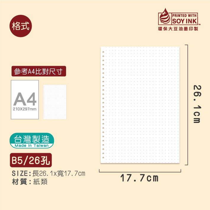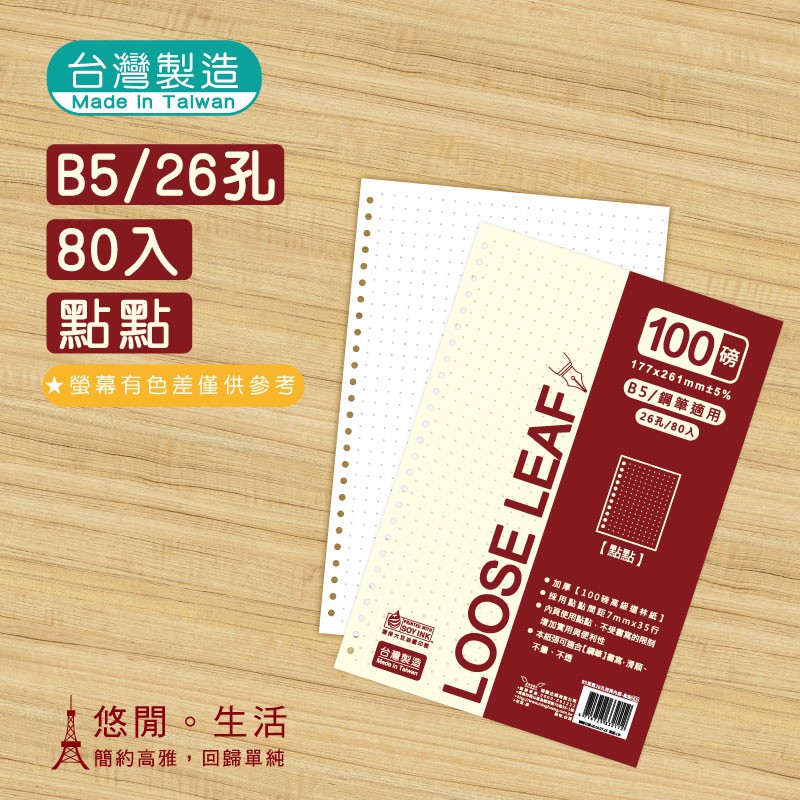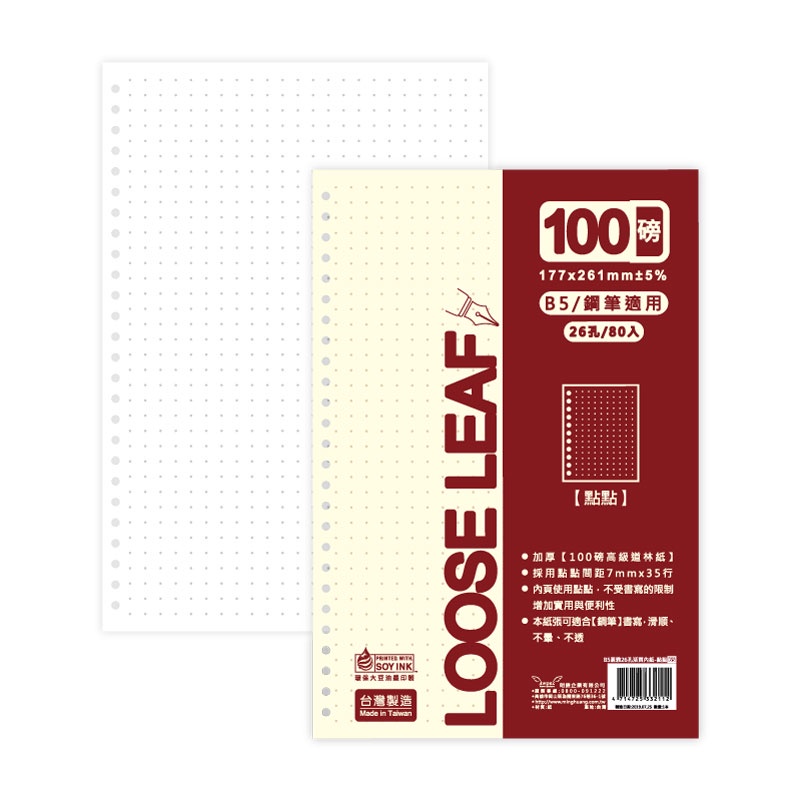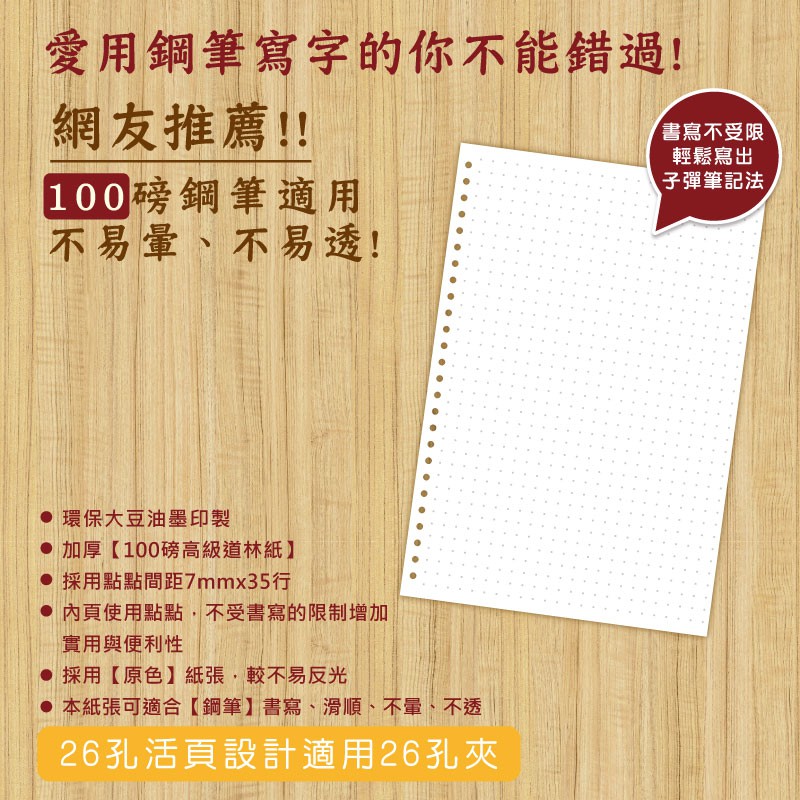 明鍠 B5 18K 素雅 26孔 活頁內紙 素雅 點點 子彈筆記法 100磅鋼筆適用