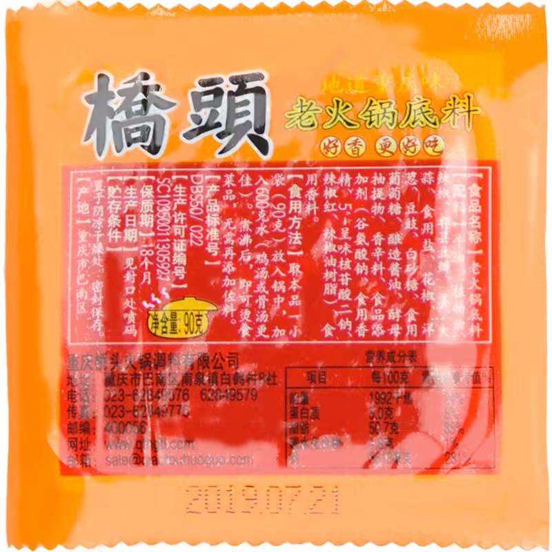 重慶橋頭火鍋底料50g橋頭牌小包裝一人份麻辣燙冒菜調料香鍋料