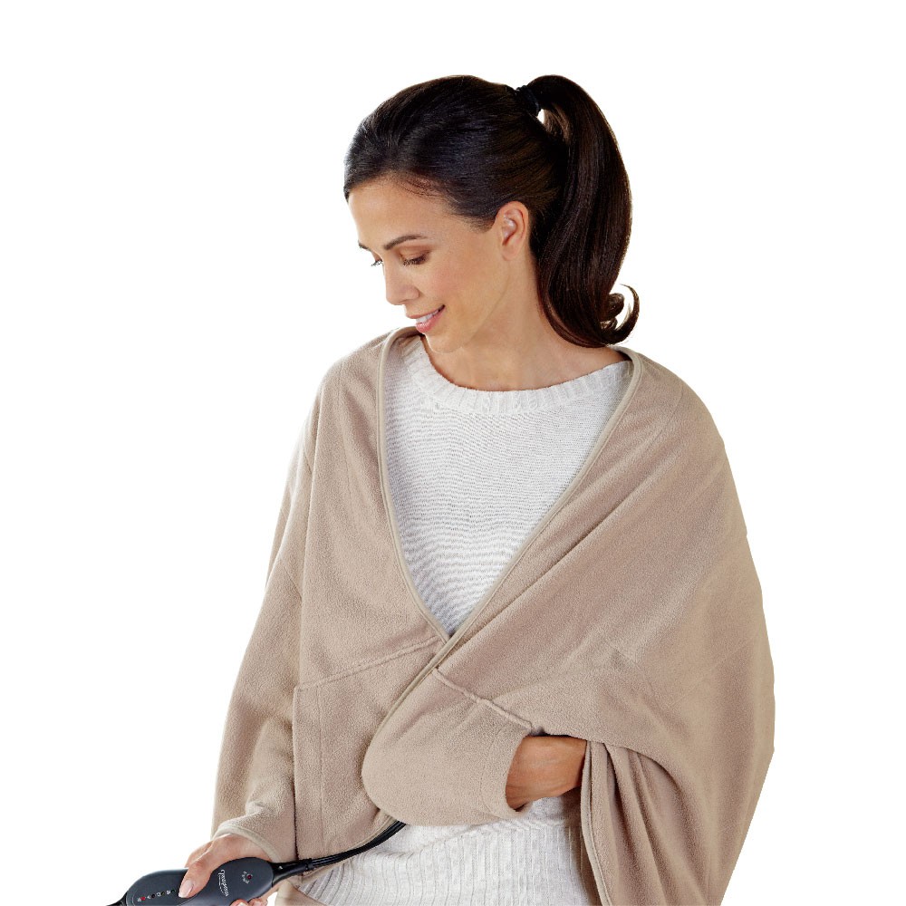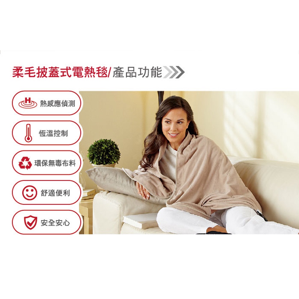 《全店10%》美國 Sunbeam 柔毛披蓋式電熱毯 (優雅駝)