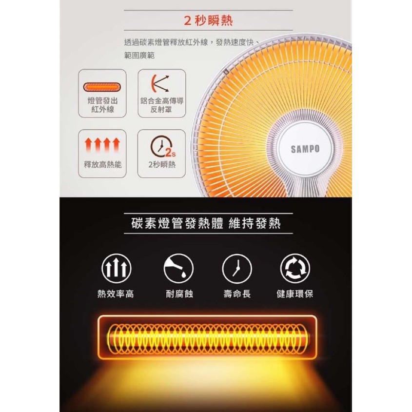 SAMPO 聲寶- 14吋負離子紅外線碳素電暖器 HX-FH14C 現貨 廠商直送