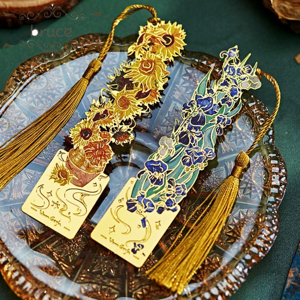 BRUCE 金屬鏤空書籤精緻流蘇鏤空花金屬書籤書籤向日葵Ins風睡蓮閱讀文具學生