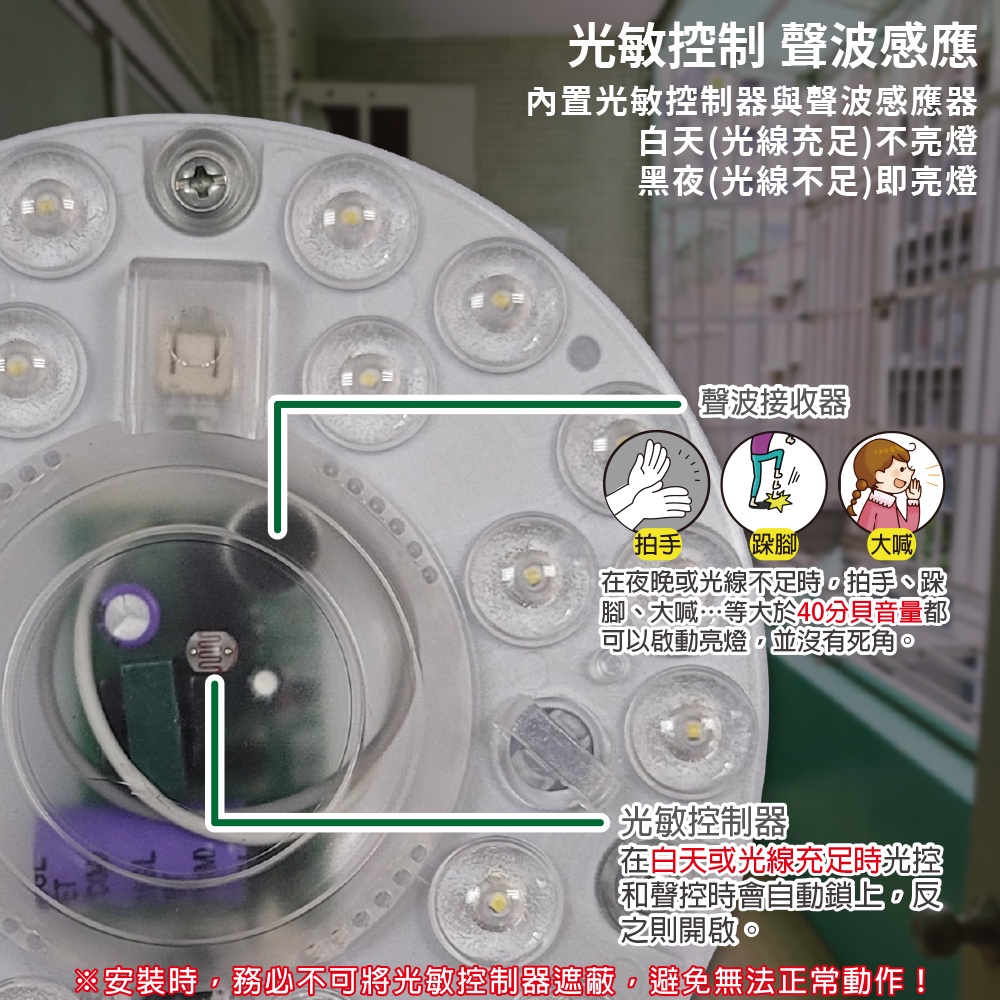 【明沛】12W LED聲光控圓盤感應燈-光敏控制 聲波感應-白天不亮燈 夜晚接收到音量才亮燈-MP7658
