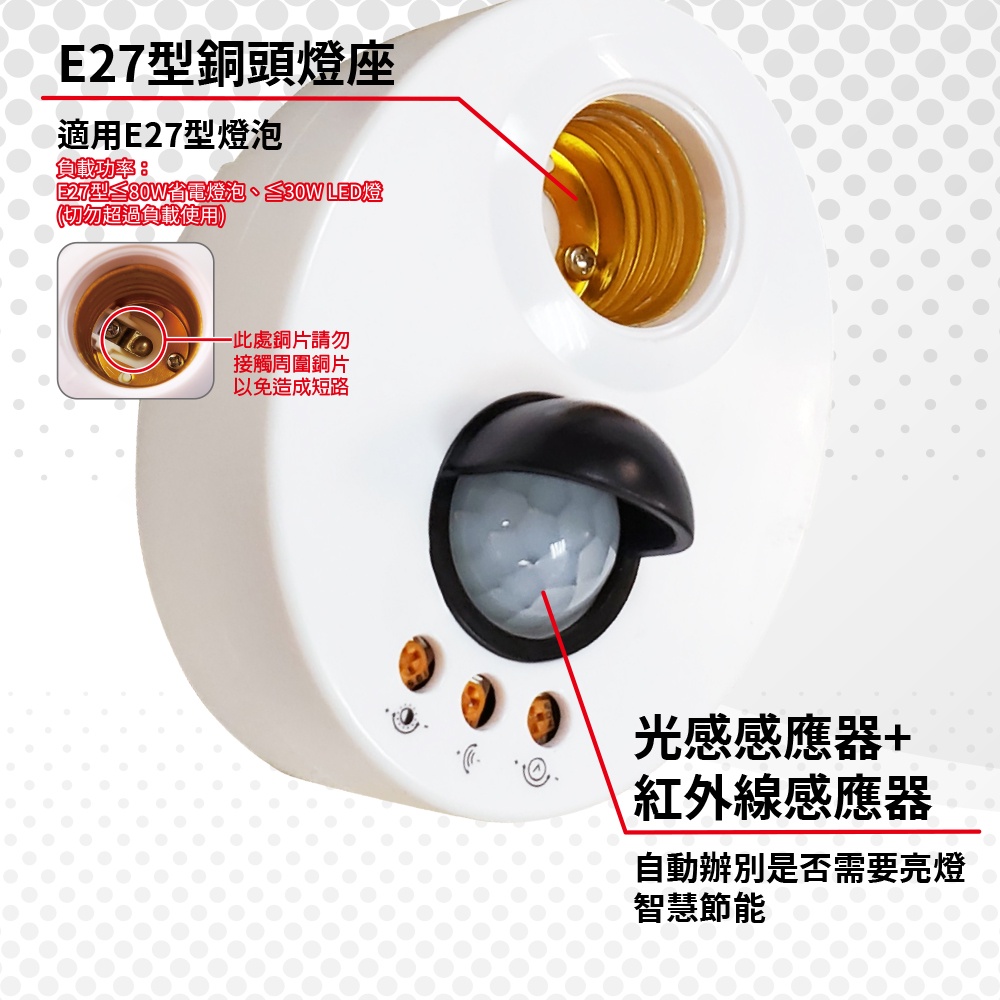 【明沛】紅外線人體感應可調式燈座(電線插頭型)-人來即亮 人走即滅-光感、時間、距離可調-MP6910