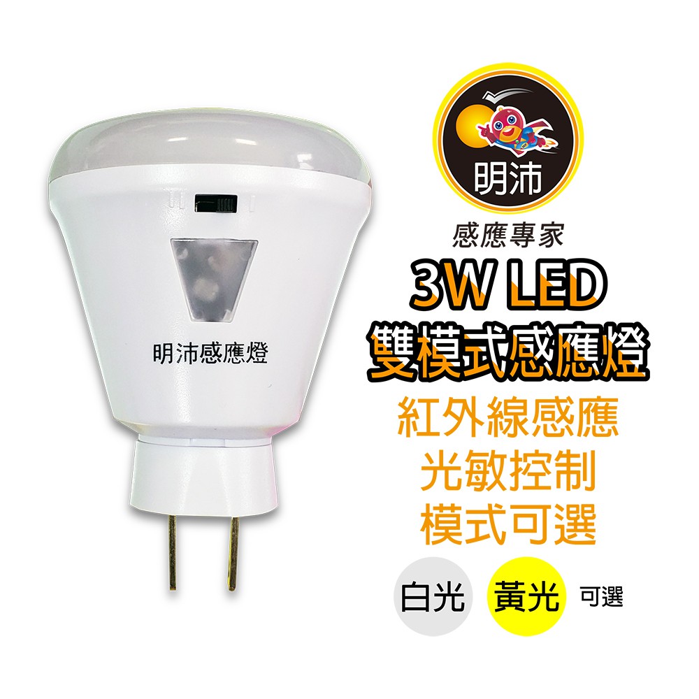 【明沛】3W 雙模式LED感應燈(白光/黃光)-隨意調節所需模式-MP5845