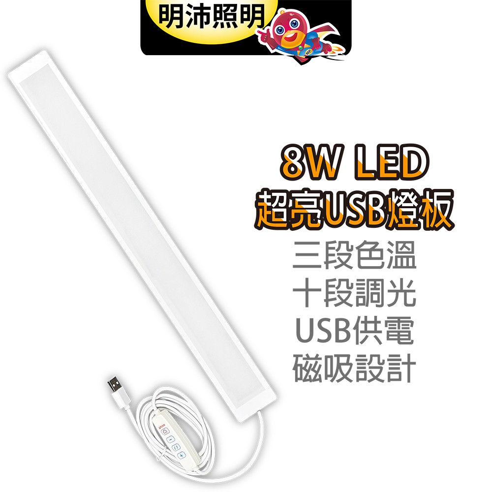 【明沛】8W USB 超亮LED燈板-磁吸設計-簡易安裝-十段調光-三種光色-USB供電-柔光護眼-宿舍燈-MP8761