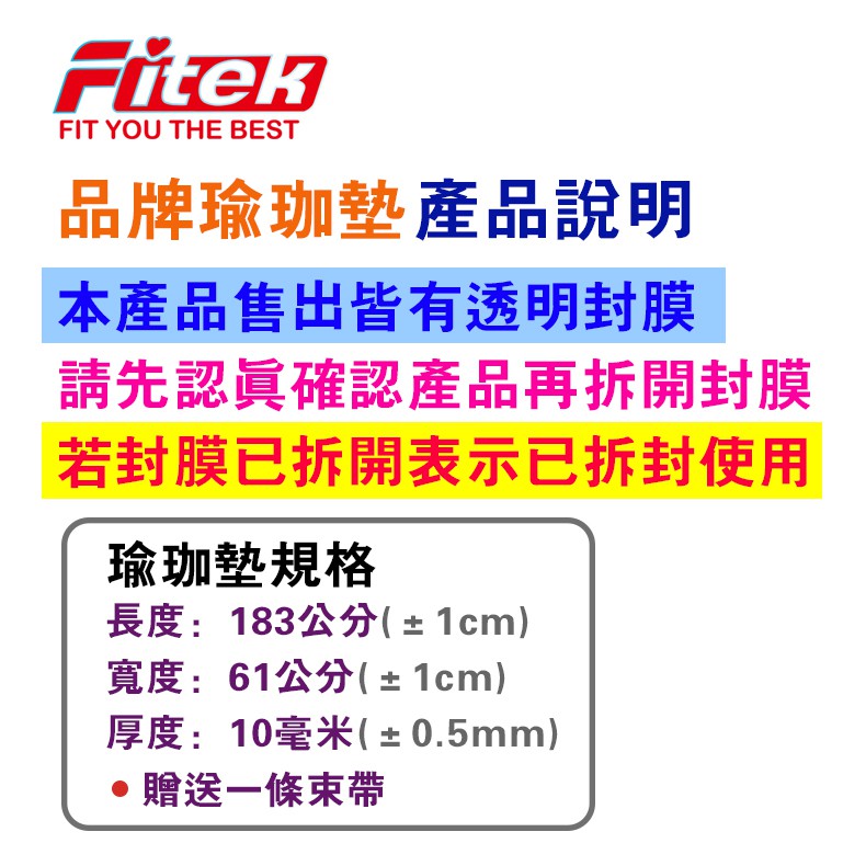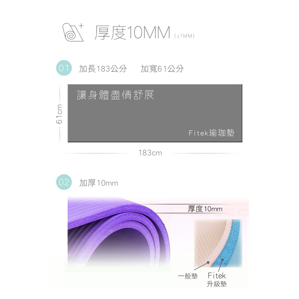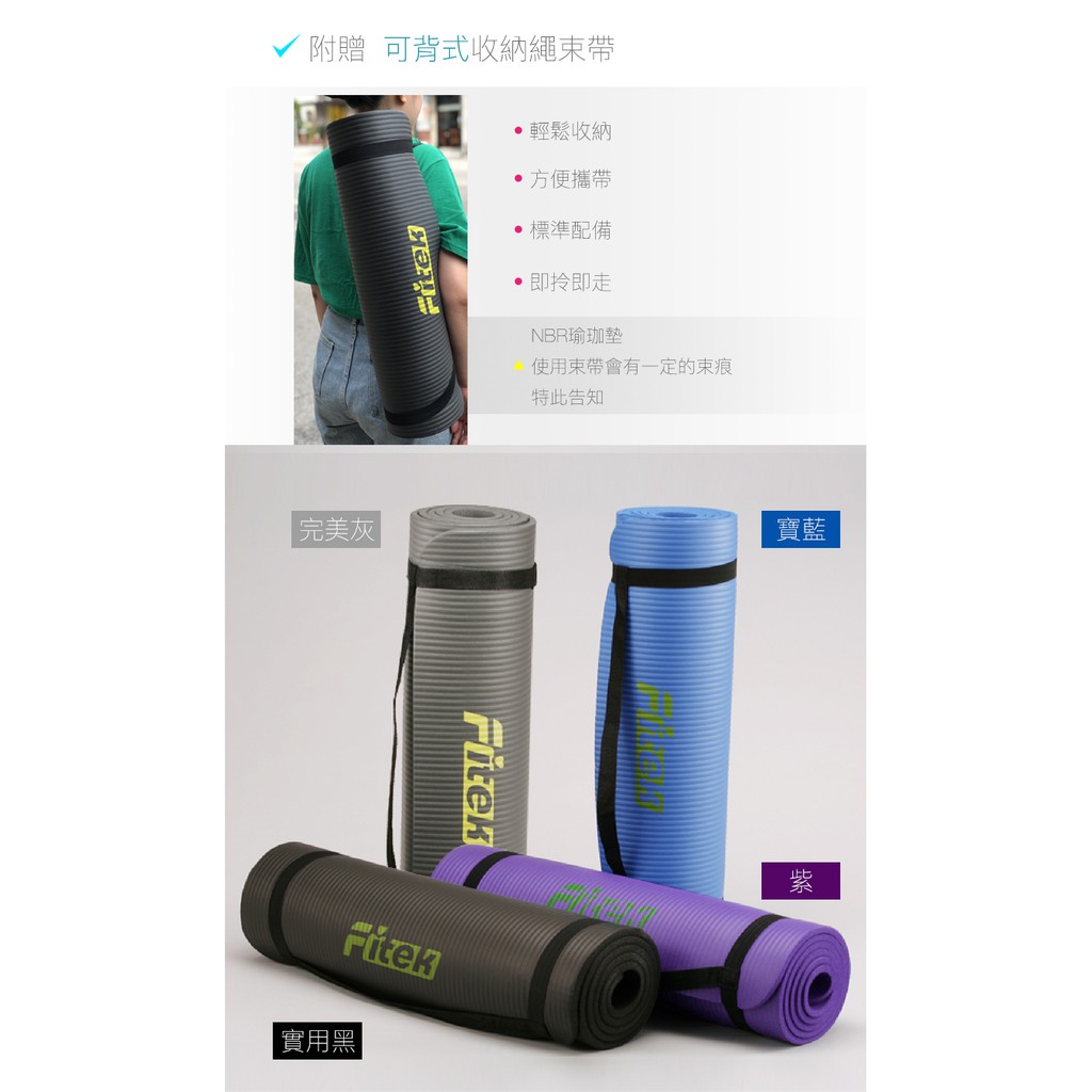【Fitek】加厚NBR瑜珈墊 10mm厚含可背式束帶 MAT03 加 長規格 長182公分