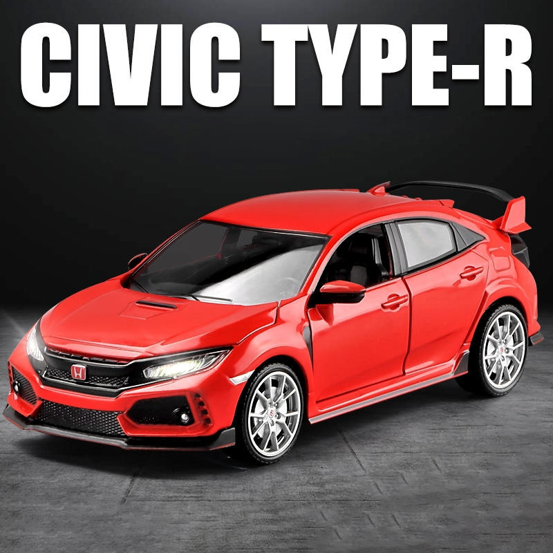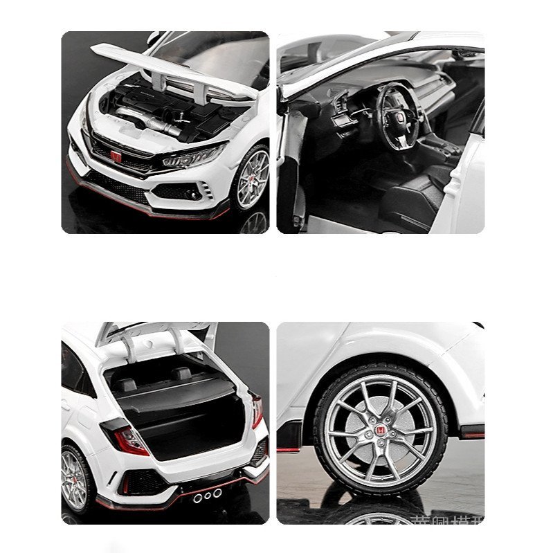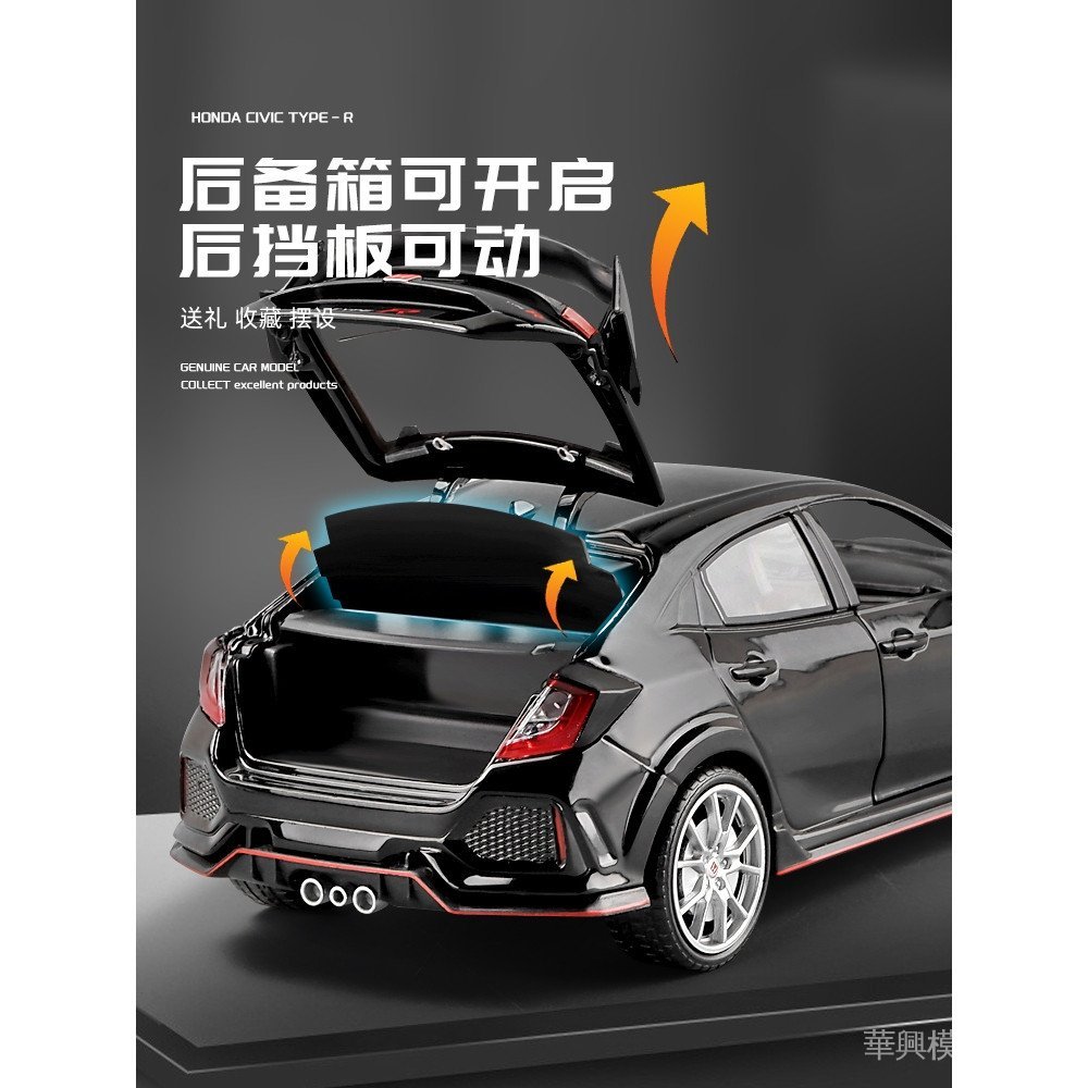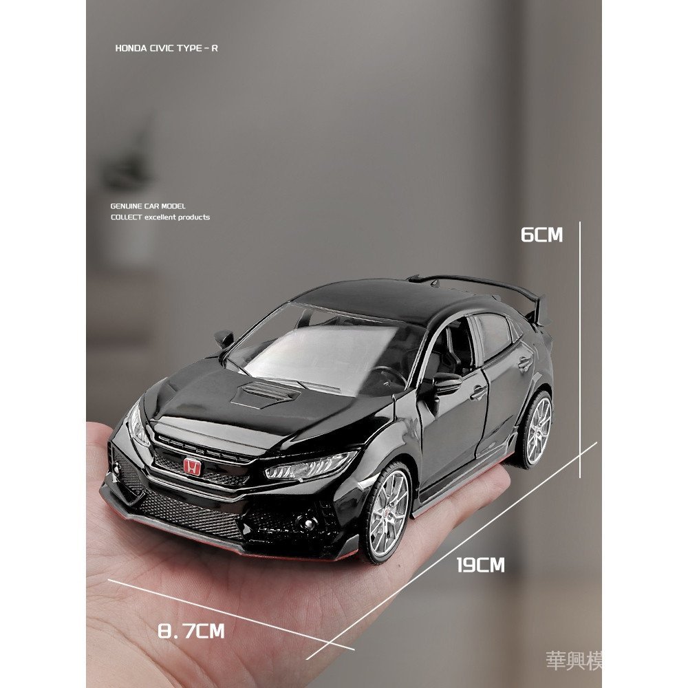 【華興模型玩具】1:24 HONDA CIVIC Type-R 合金汽車壓鑄和玩具車模型聲光回力汽車玩具兒童禮物
