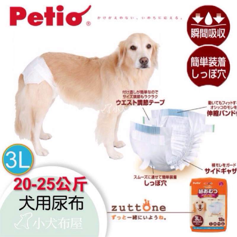 現貨【日本Petio】20-25公斤犬《老犬介護 專用尿布 3L號 12枚 》新款免穿褲*大型犬尿布*傷殘犬用