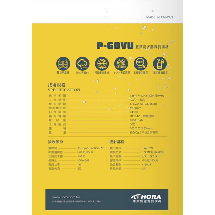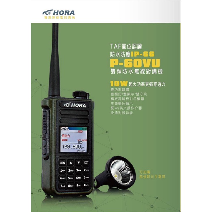 [ 超音速 ] HORA P-60VU 10W 彩色繁體中文 雙頻 無線電對講機 【好禮四選一】【免運費】P60VU