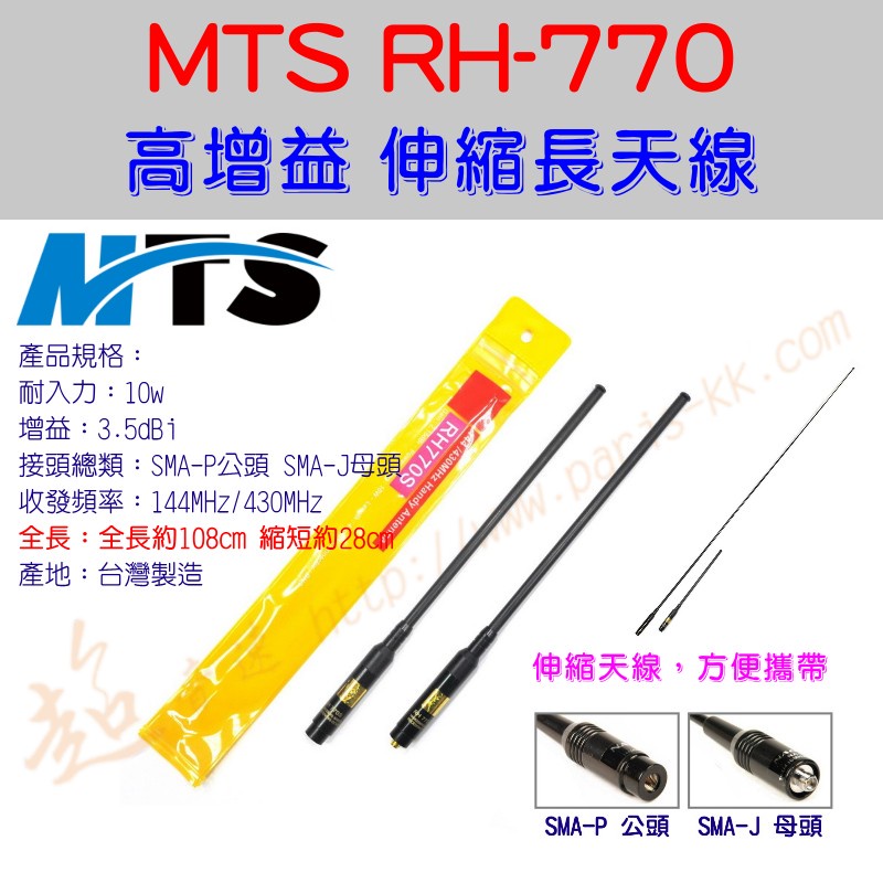 [ 超音速 ] 台灣製造 MTS RH-770 全長108cm 收合28cm 高增益 伸縮天線 (雙頻天線 加長天線)