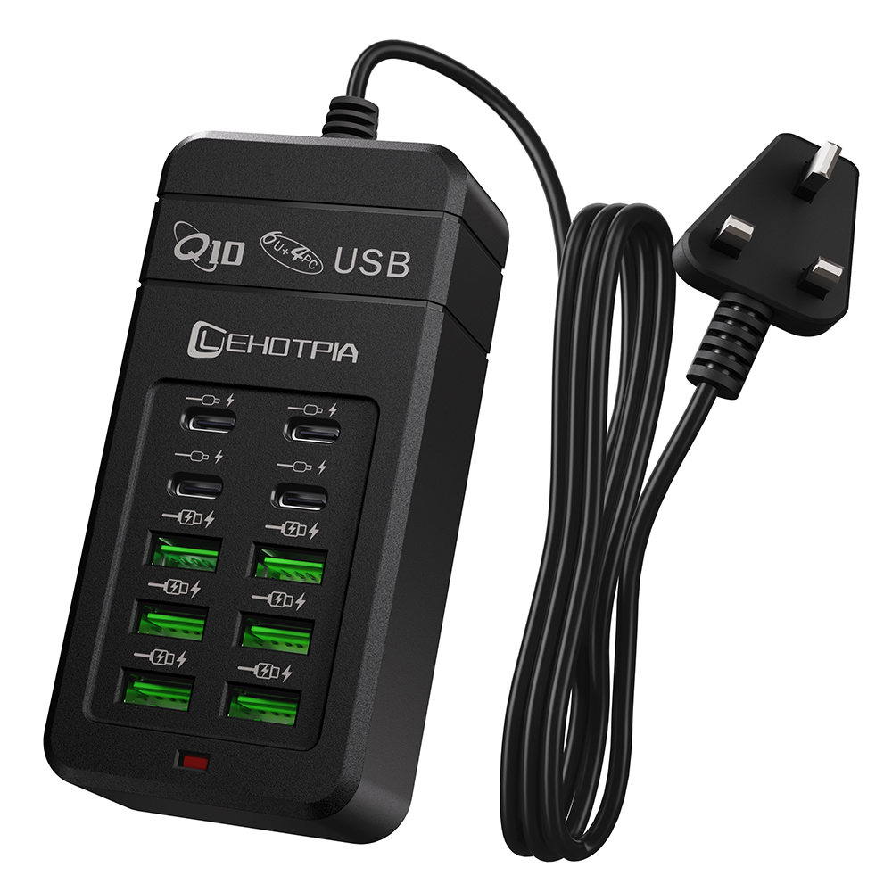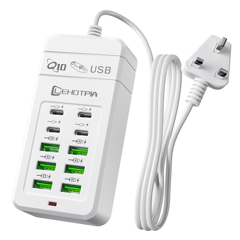 USB插頭,配備英國標準電源插座,10個插孔,1.2米延長線,支持同時為10個電子設備充電,黑色/白色可選。
