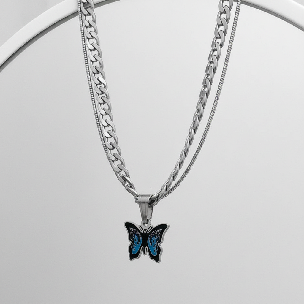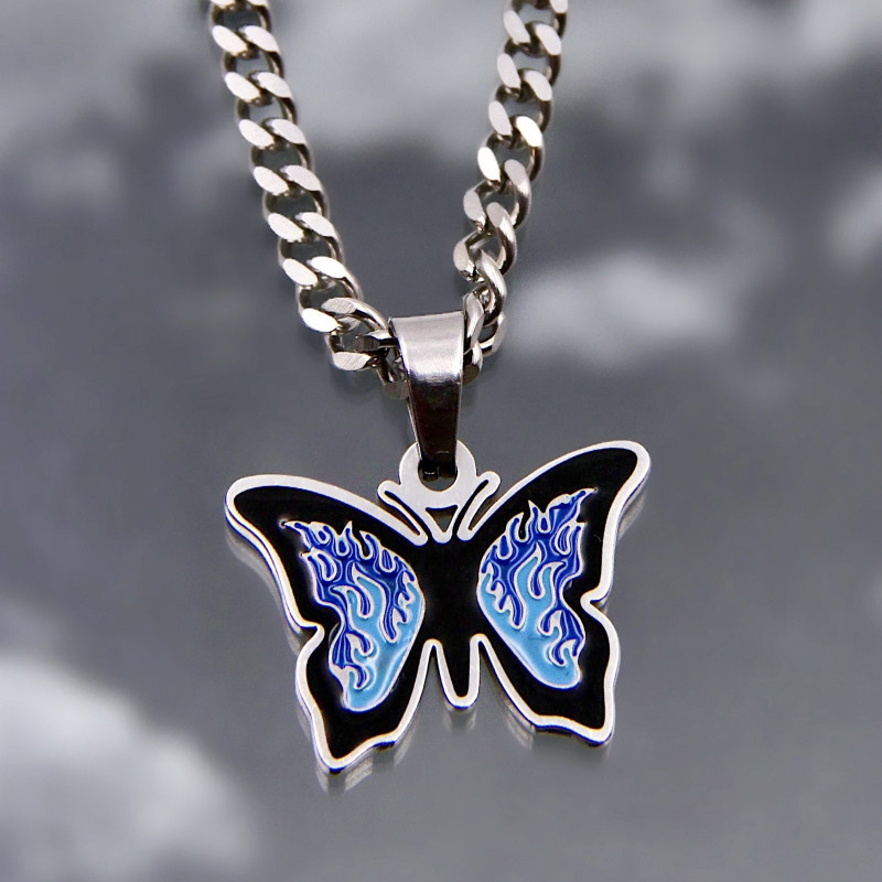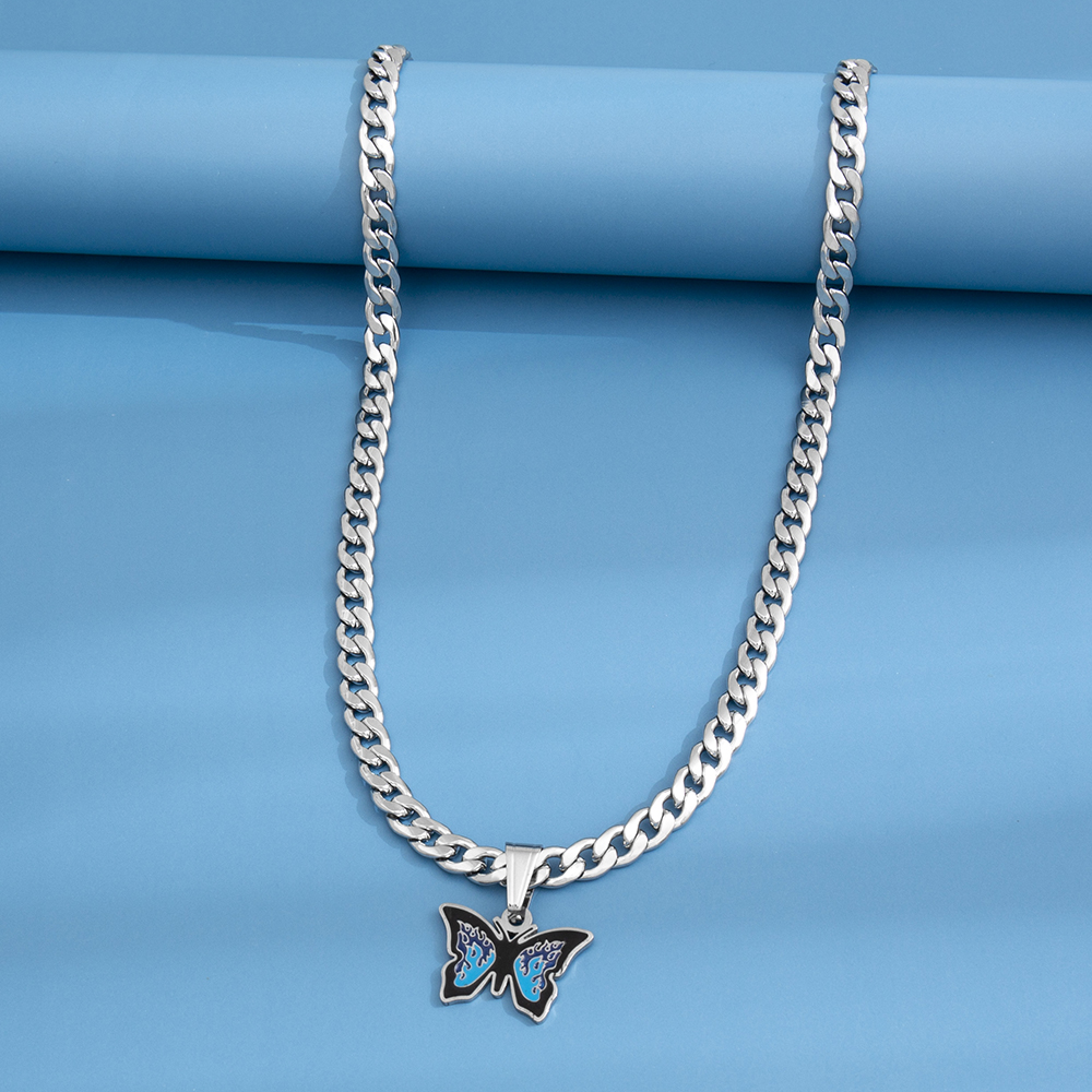 男女通用 Y2K 朋克蝴蝶項鍊 鈦鋼 彩色滴油 嘻哈不掉色