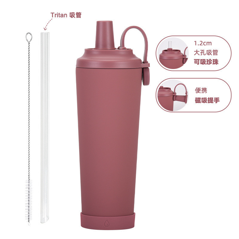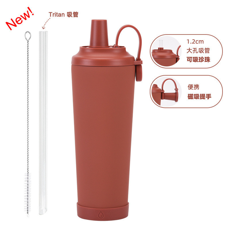 24H🚀830ml陶瓷塗層不鏽鋼吸管杯 可吸珍珠便攜磁吸提手保溫杯 咖啡杯 陶瓷保溫杯 汽車杯 車用杯 車用保溫杯