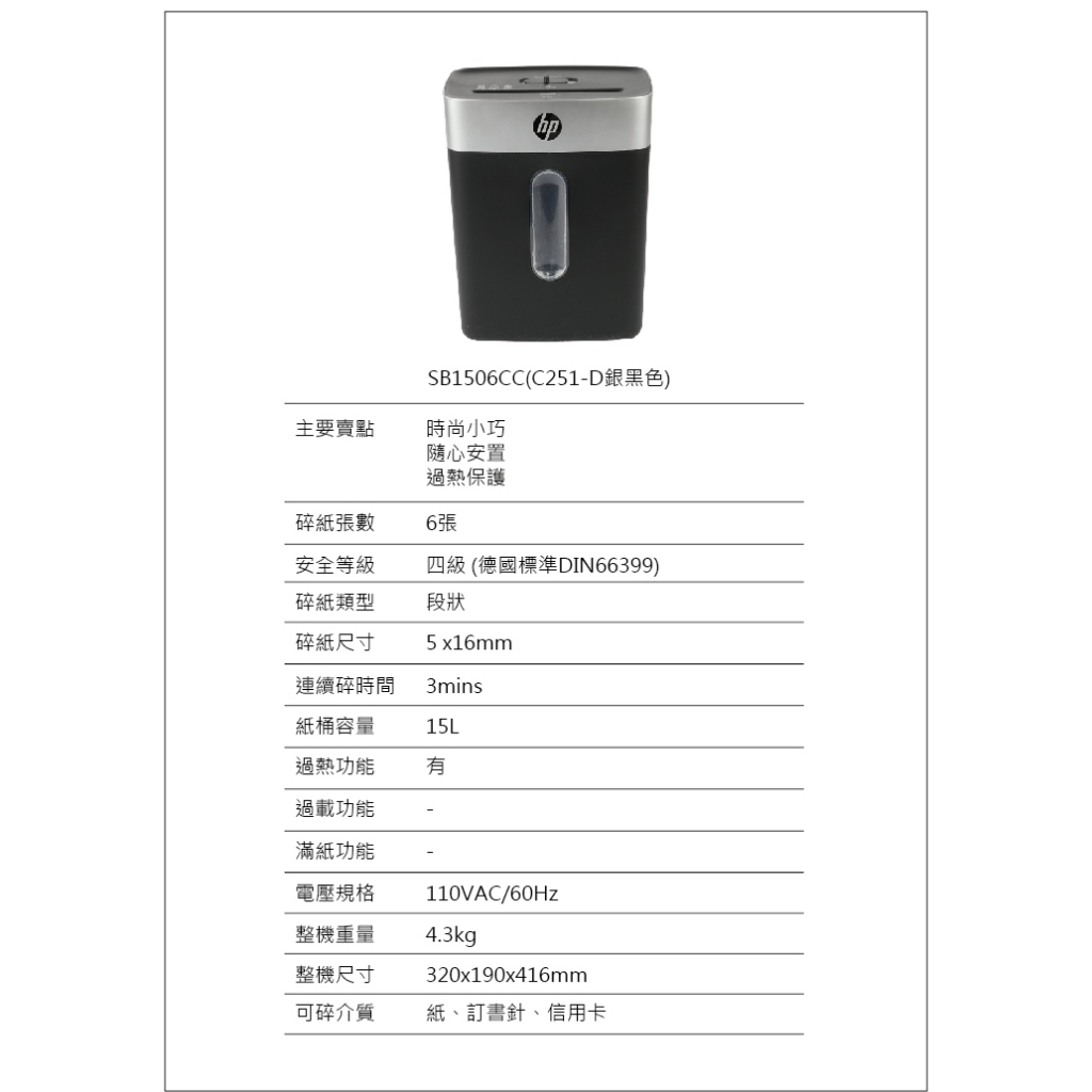 【HP碎紙機旗艦店】HP C251-D 高保密碎紙機(黑/銀黑/清水模灰) (B1506CC) <下單送10%蝦幣回饋>