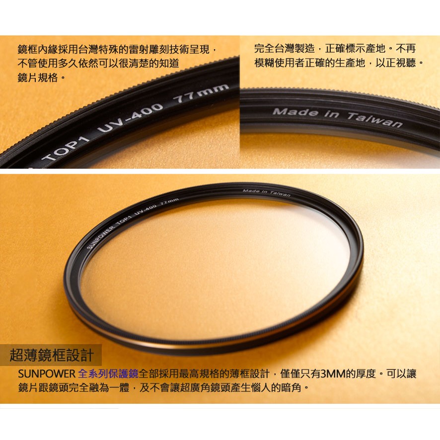 ~光達數位~ SUNPOWER 台灣製 37-82mm TOP1 UV-C400 Filter 超薄框 保護濾鏡 保護鏡