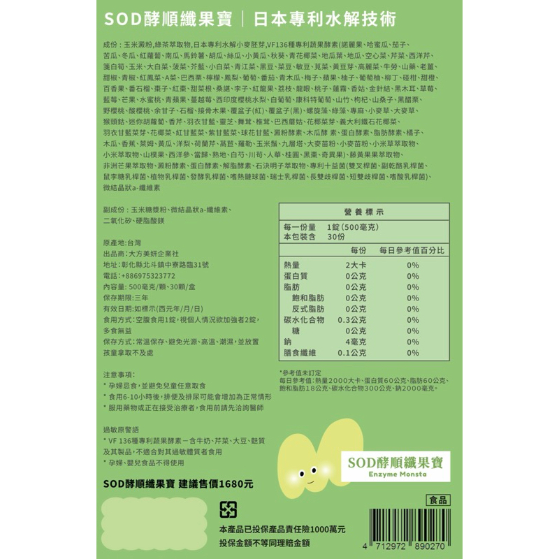 【Tiny Monsta】 SOD酵順纖果寶 蔬果酵素 酵素錠 日本水解專利酵素 專利VF136蔬果 綜合酵素