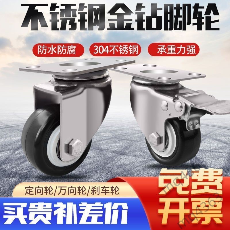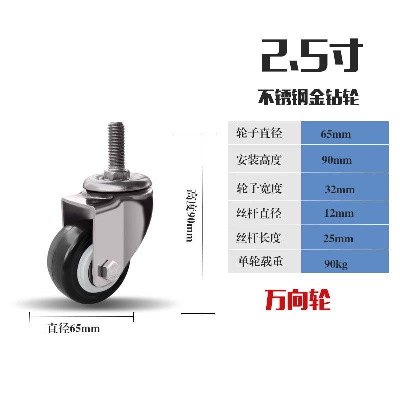 【台灣出貨】304不鏽鋼 萬向輪 防鏽金鑽輪 聚氨酯靜音輪 耐磨櫃子桌子輪 2.5寸 高品質