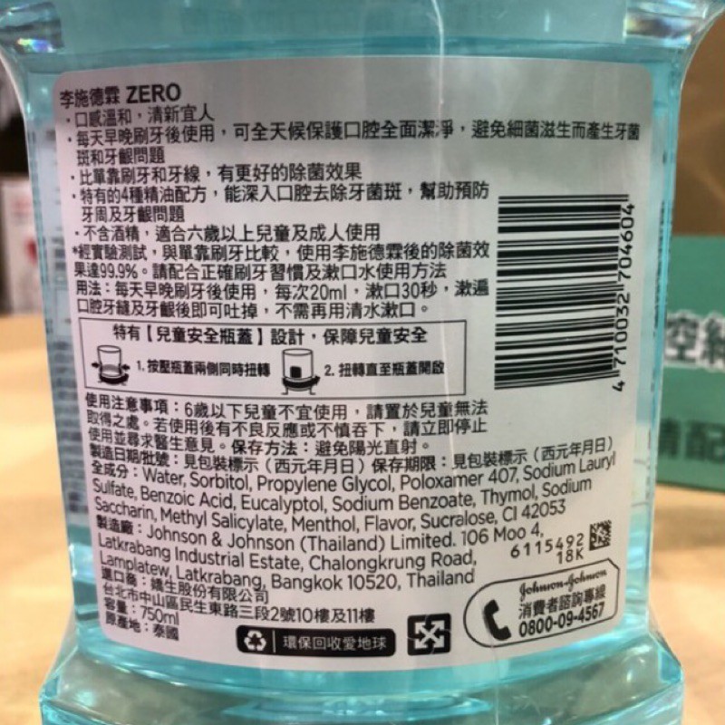 Costco代購 李施德霖漱口水(無酒精) 750毫升*4瓶 #155405