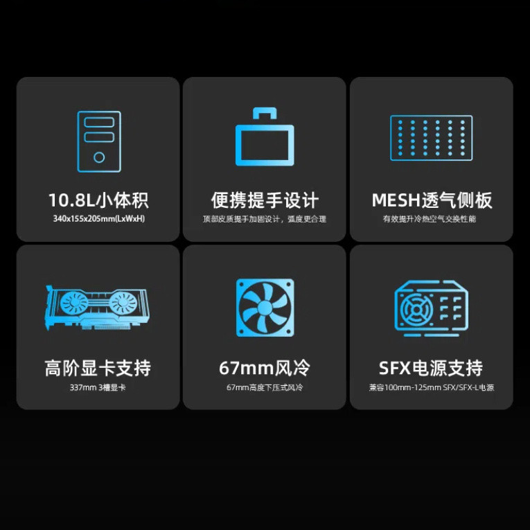 Shiny Snake S400 Pro ITX 機箱,10.8L 帶手柄的迷你電腦機箱,MESH 側面板,支持 337