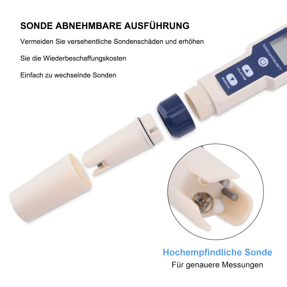 YAGO 5合1 PH/鹽度/溫度/TDS/EC五合一測試筆酸鹼多功能水質測試儀