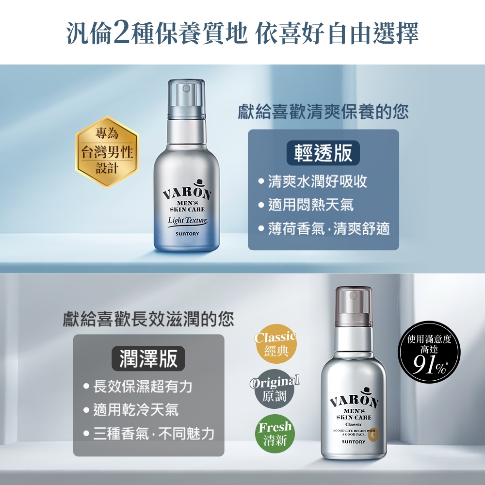 【三得利】VARON汎倫 紳仕多效活顏精華 120ml 潤澤3款/輕透1款任選 官方直營
