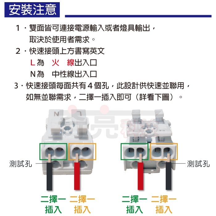 【奇亮科技】 按壓式 快速接頭 2P 2孔 簡易接線器 接線座 接線端子 快接 電線連接器 含稅 光域設計