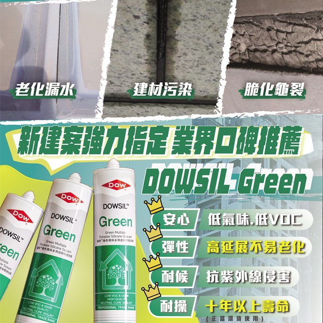 「台灣總代理直出」陶熙道康寧DOWSIL™ GREEN綠色環保多用途矽利康/建案公司指名選用耐候矽利康