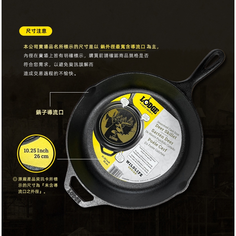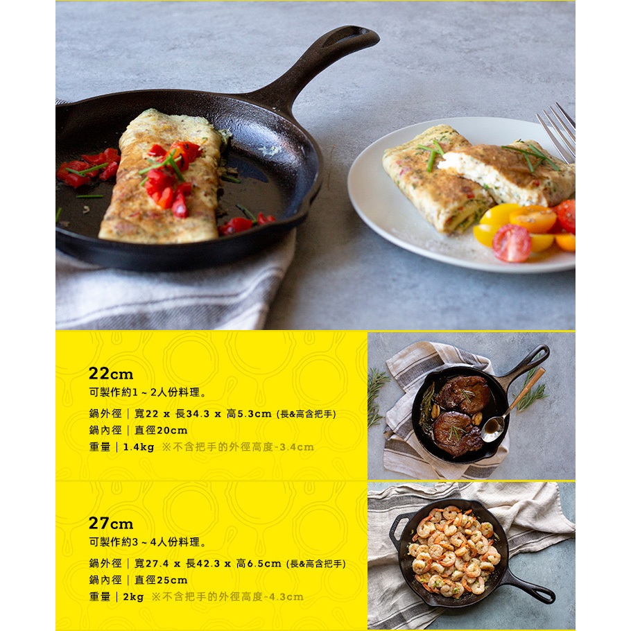 【美國LODGE】主廚系列 美國製單柄鑄鐵煎鍋-27cm (10吋/LC10SK)