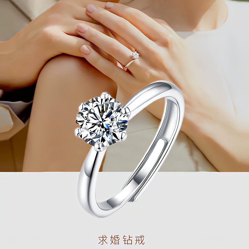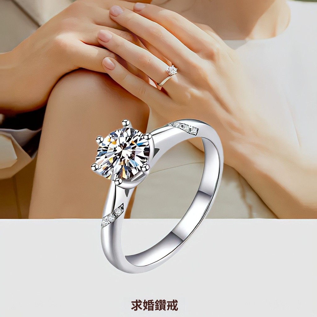 正品進口 克拉鑽戒 純銀戒指 求婚戒 結婚戒 純銀莫桑鑽戒指情侶對戒閉口不掉色一克拉鑽戒結婚情侶戒 生日紀念禮物