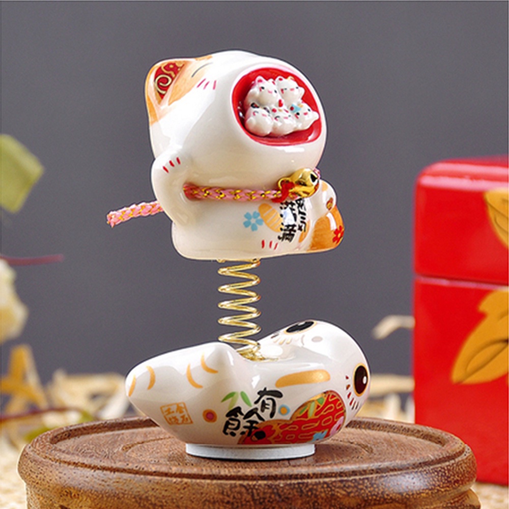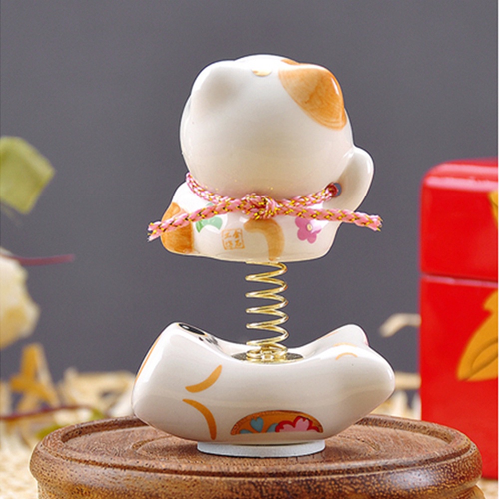 台灣現貨【金石工坊】財氣滿滿彈簧貓(高8CM) 招財貓 陶瓷桌上開運擺飾 汽車擺件