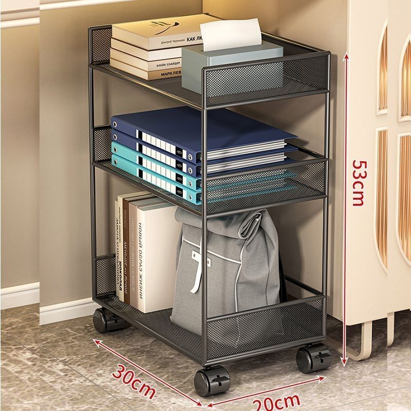 【貝貝精選】桌下收納 小推車置物架 雙層滑輪小推車學生桌下收納移動書架書本帶輪收納盒書包置物架子