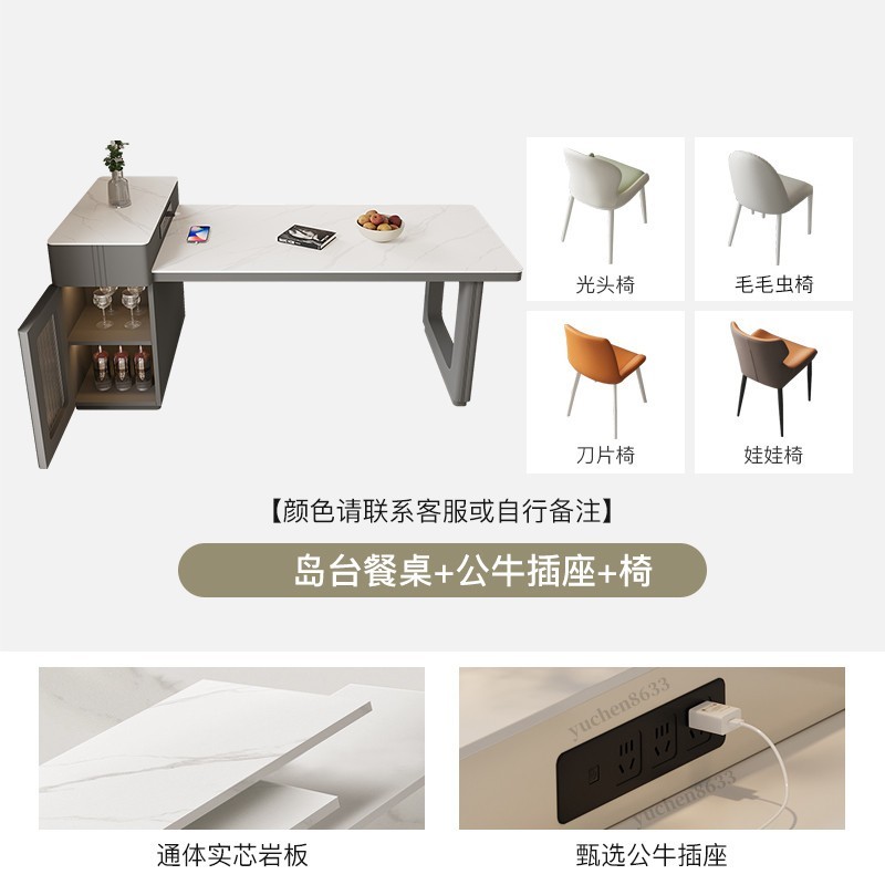 【全台可上門安裝 免運好品質】島台餐桌 岩板餐桌 伸縮島台 餐桌 奶油風島臺餐桌島臺一體可伸縮家用巖闆餐桌現代簡約