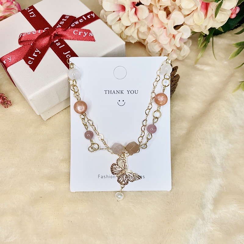 垂墜蝴蝶愛心雙層手鍊 水晶 18K 手作 免運