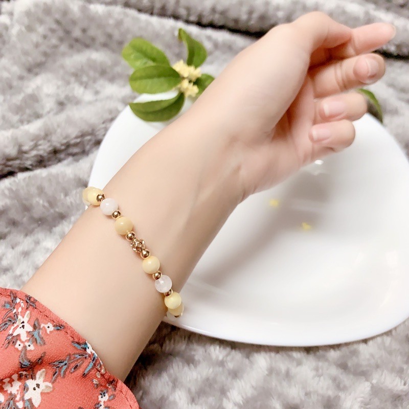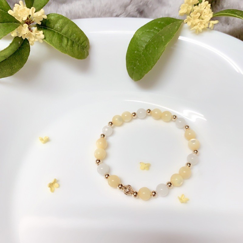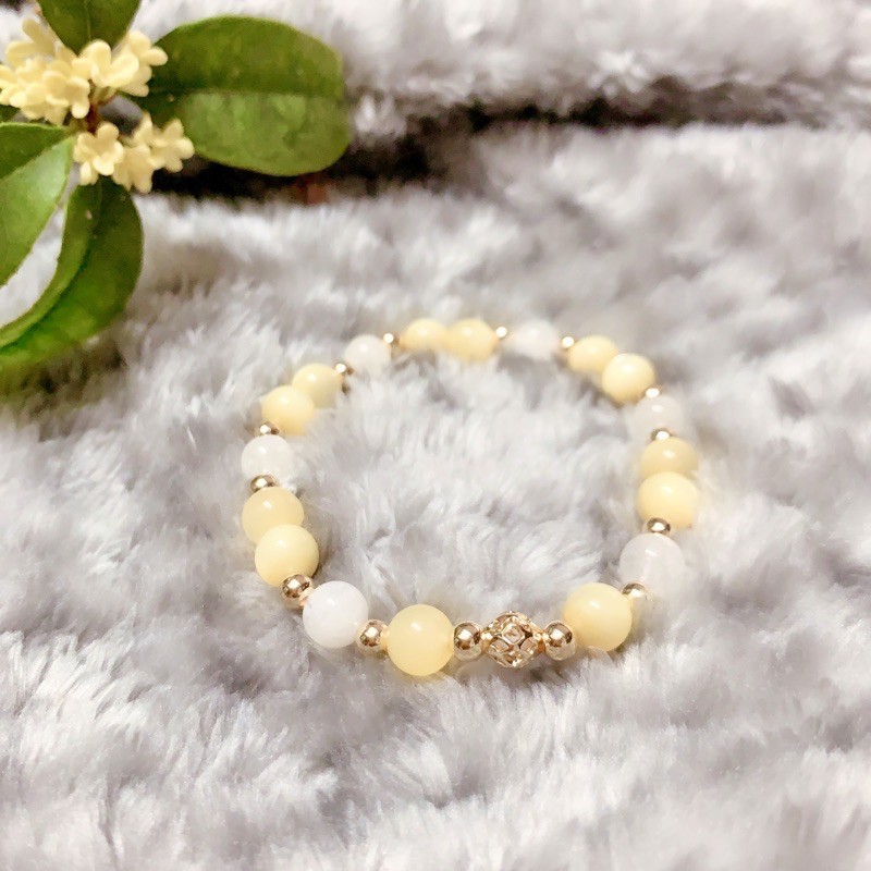 黃蝶貝藍月光14K彈性手鍊 水晶手珠