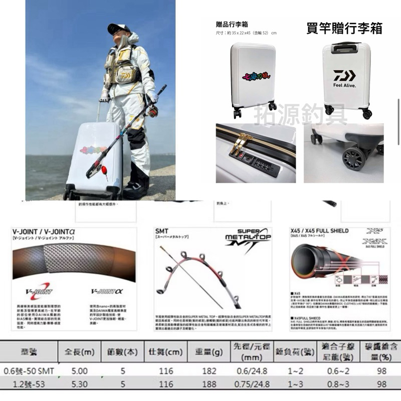 (拓源釣具)DAIWA 七海刀郎 聯名款 紫月刀 磯釣竿 買+送小行李箱
